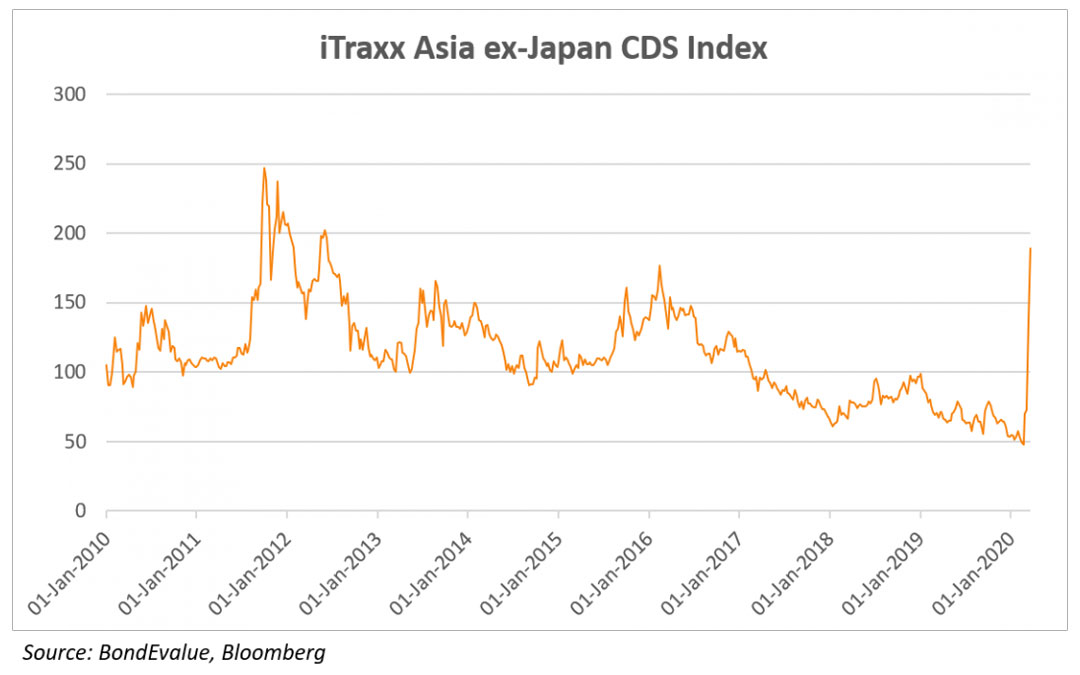 The ECB’s $820 bln bond-buying program provided little respite to markets as cost of credit default swaps rose. The Markit iTraxx Asia ex-Japan Index of CDS rose 10 bps to about 160 bps, the highest level seen since 2016, according to data compiled by Bloomberg. On the week, it is up 31 bps after a 52 bps surge last week.