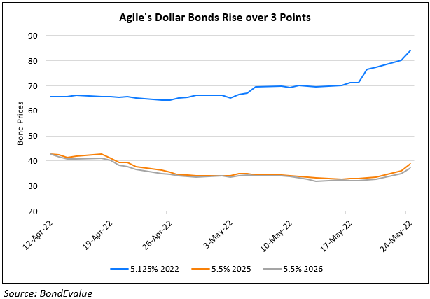 Agile Group’s dollar bonds rose by over three points after reports that it made repayments on two of its outstanding loans. While details of the loans are not available, Bloomberg notes that the repayments have eased the developer’s cash flow mismatch.