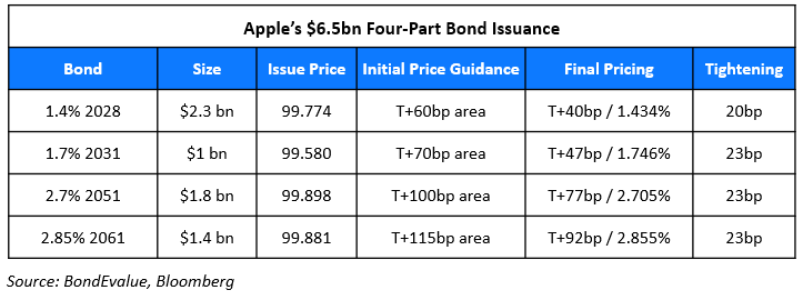 The SEC registered bonds are rated Aa1/AA+. Proceeds will be used for general corporate purposes, including share repurchases and payment of dividends to return capital to shareholders, funding for working capital, capital expenditures, acquisitions and repayment of debt.