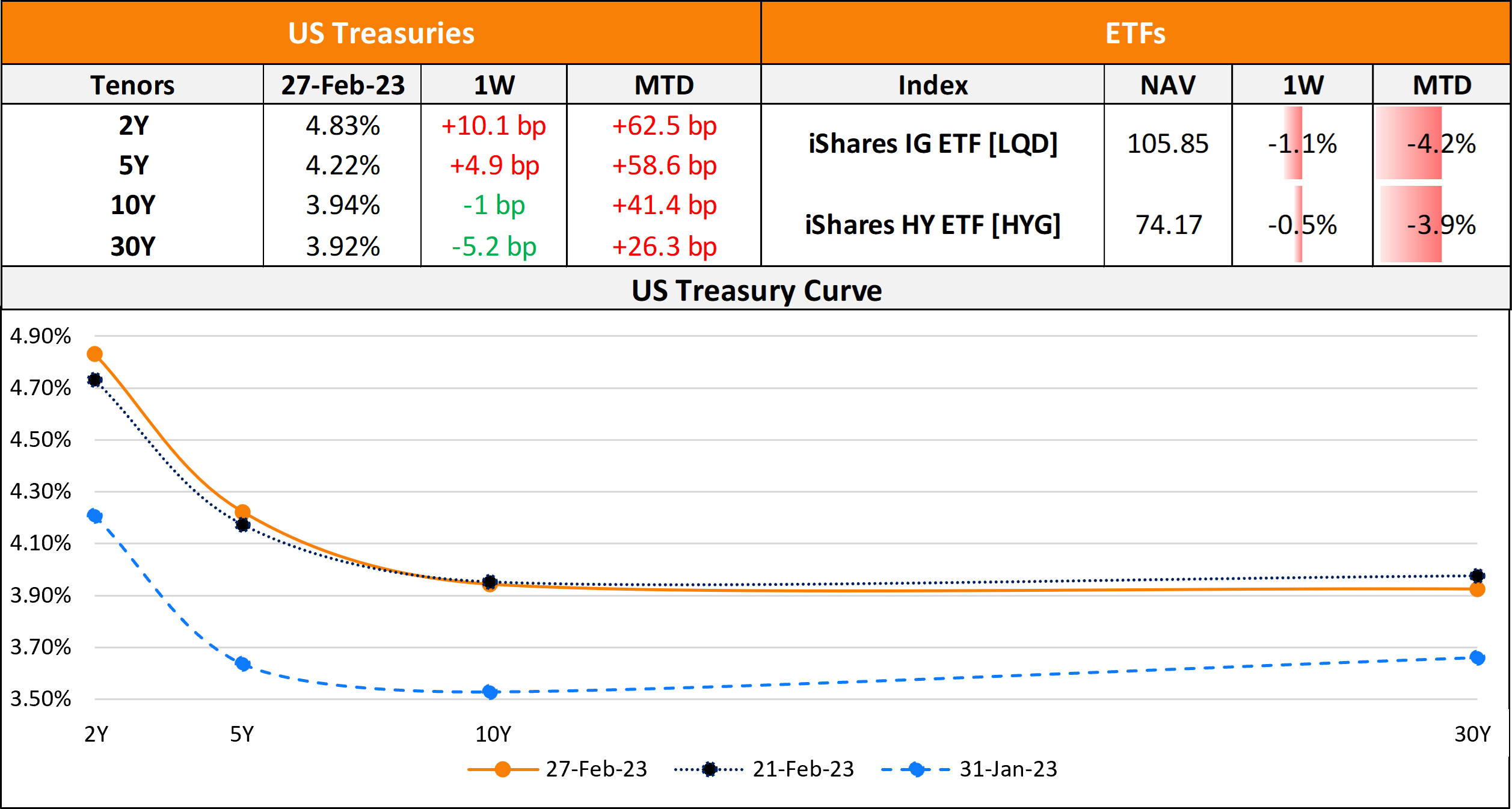 Aramco’s dollar bonds were trading in the green. For instance its 5.25% 2034s were up 0.4 points to 100.1, yielding 5.2%
