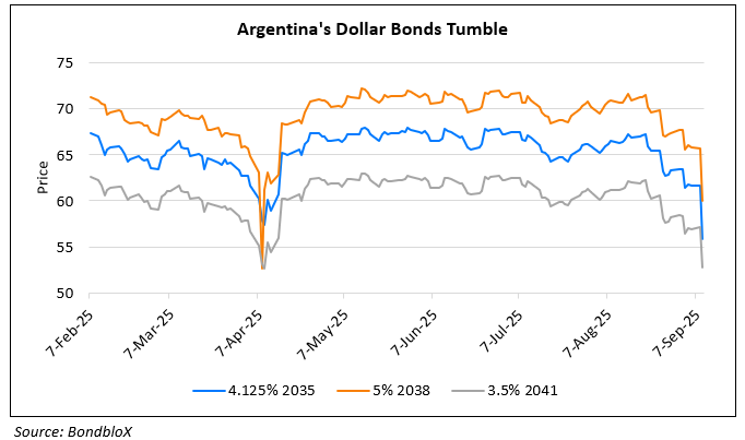 Argentina’s dollar bonds plunged across the board after President Javier Milei’s party faced a substantial defeat in the Buenos Aires provincial election. The defeat was considered to be much worse than what analysts had expected with Milei’s party trailing by nearly 14%. On the back of this defeat, analysts note that concerns are likely to rise among investors about the administration’s ability to garner the required political support to implement its economic reforms. While Milei acknowledged that they made political mistakes, he vowed to continue with austerity and free-market policies that have helped keep a lid on inflation. With the national midterm vote in October, Milei’s chances are said to depend on how he corrects course by then. Buenos Aires province makes up for almost 40% of the national electorate and thus had a major impact.