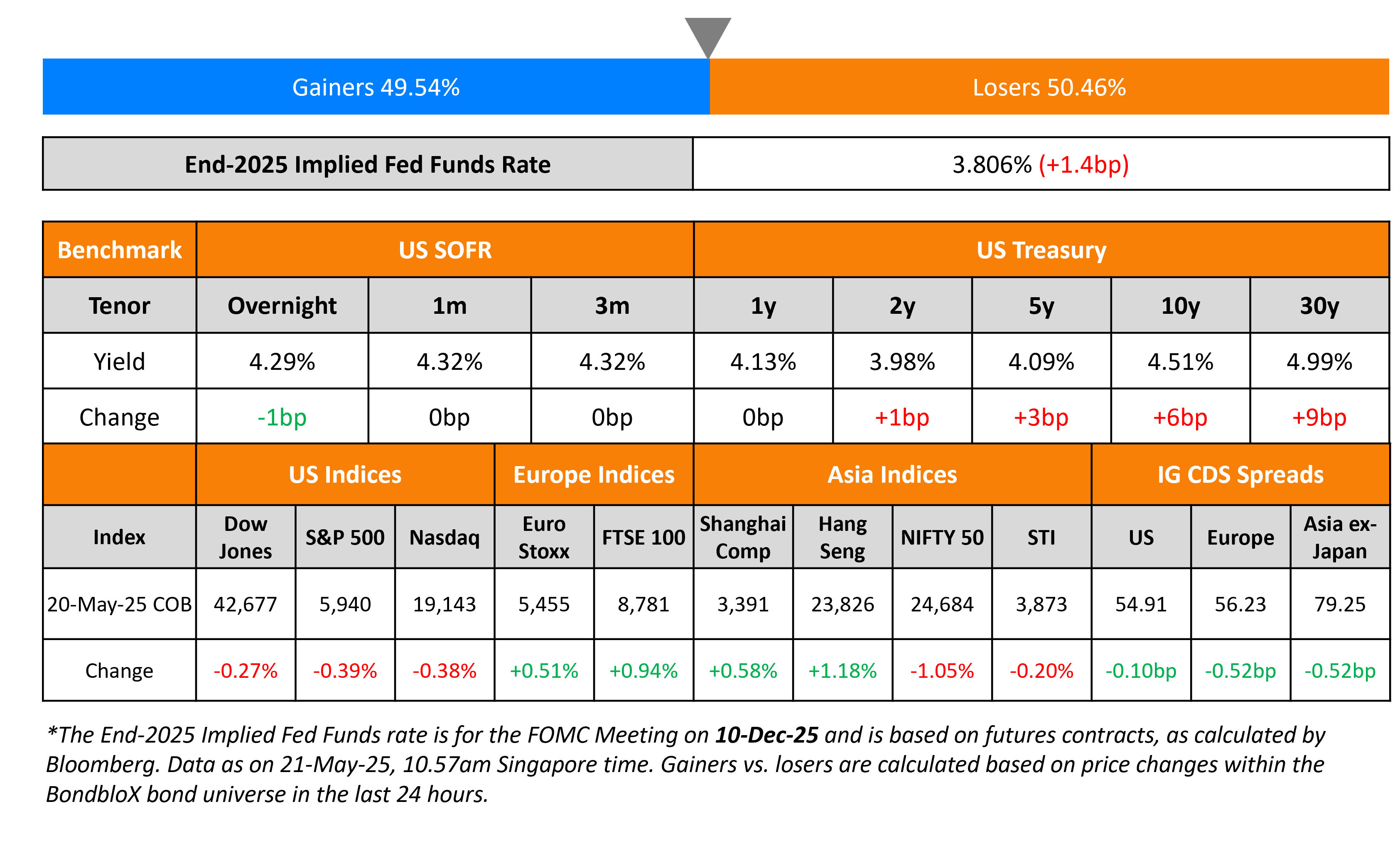 Looking at the equity market, S&P and Nasdaq were down by 0.4%. Looking at credit markets, US IG and HY CDS spreads tightened by 0.1bp and 0.4bp respectively. European equity indices were higher yesterday. The iTraxx Main CDS spreads and Crossover CDS spreads tightened by 0.5bp and 4.2bp respectively. Asian equity markets have broadly opened higher today. Asian ex-Japan IG CDS spreads tightened by 0.5bp. Separately, Japanese government bond yields rose, particularly on the long-end, after a poor 20Y auction which saw the weakest demand in more than a decade. This comes amid the BOJ’s recent policy measures which include trimming JGB purchases.