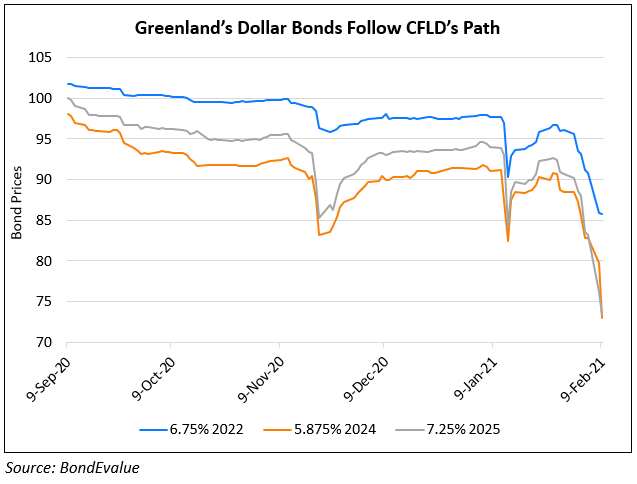 Greenland’s 5.875% 2024s saw its z-spread widen ~290bp since the beginning of the month to 1625.2bp while Fantasia’s 9.875% 2023s saw a ~150bp widening to 1192.9bp in the same time period. RiseSun’s 8.95% 2022s issued last month at par are currently trading at 91.85, down 8.1% since issuance.