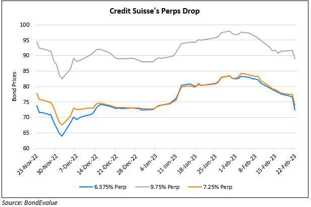 Credit Suisse’s perpetual bonds/AT1s were down over 2-4 points after news broke out that the swiss financial markets regulator Finma was investigating the banks involvement in market manipulation. Credit Suisse Chairman Axel Lehmann’s commented on December 2 that outflows “basically have stopped”, just over a week after the group had disclosed an outflow of CHF 84bn ($90.8bn) of client assets on November 23. By the end of the quarter, the number rose to CHF 110.5bn ($119.2bn). Moreover, the comments were made before the completion of its $4bn capital raise that helped arrest the decline in its stock and bond prices. Bloomberg notes that the CEO Ulrich Koerner recently told analysts on a call that more than 85% of the outflows came in October and November, implying that ~CHF 17bn ($18.3bn) of outflows were seen in December after Lehmann’s remarks. Credit Suisse’s shares closed lower by 4%.