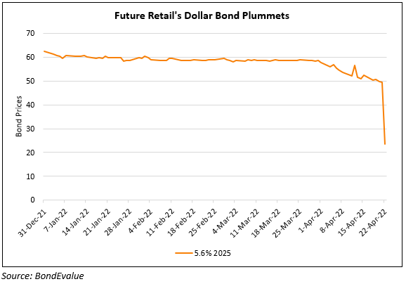 Future Retail’s dollar bonds collapsed by over 50% after Future Group lenders rejected a proposal regarding the sale of its wholesale, retail, and logistics assets to Reliance Retail Ventures Ltd. (RRVL). As per Mint, the rejection happened after the deal value was lowered by Reliance Industries from $3.4bn in a surprise move. Lenders pointed out that Reliance Industries not only lowered the valuation of the deal but also came up with new conditions that needed to be met for the deal to be executed at a revised value. Previously in 2020, Reliance had agreed to takeover Future Retail’s assets for $3.4bn. Lenders are not in favor of approving the revised form of the deal as there are some gaps in the way payments to lenders are structured in the new deal. Future Group has a debt burden of more than INR 270bn ($3.54bn) towards its lenders. Future Retail’s shareholders voted on the sale plan on April 20 and creditors cast their votes on April 21 meeting in accordance with an order of the National Company Law Tribunal (NCLT). Reports also suggest that Reliance now wants a cheaper deal and banks are not comfortable with revised valuations. The rejection of the proposal by lenders adds to recent negative news where Bank Of India referred Future Retail to NCLT last week to recover a INR 35bn ($460mn) default on the one-time restructuring scheme.