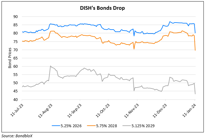 DISH Networks’ bonds dropped sharply across the curve, by over 6 points. DISH recently completed its merger with Echostar. Echostar yesterday unveiled a series of “strategic transactions to further unlock incremental strategic, financial and operating flexibility for its business”. Under the deals, DISH has transferred certain of its wireless spectrum licenses under the umbrella of a newly formed subsidiary, EchoStar Wireless Holding. Loans valued at ~$4.7bn have also been reassigned and amounts owed will now be paid by DISH to an EchoStar subsidiary.