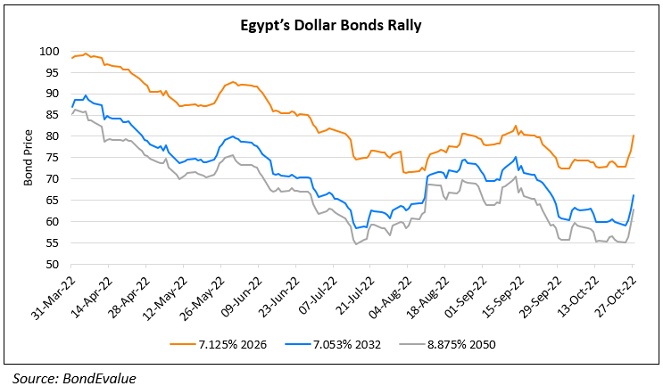 Dollar bonds of Egypt rallied on news of regulations aimed at cutting through red-tape and speeding up the regulatory process for investments in the nation. The new rules include setting a time limit of 10 working days for securing necessary approvals and needing only one-time approvals. Besides, they plan to revise regulations to help deal with restrictions on land ownership and to facilitate foreign ownership of real estate in Egypt. The country also plans to allow foreign investors to be registered in the importers’ registry for a period of 10 years. It added that a system will be set in place for quick refunds of value-added taxes.