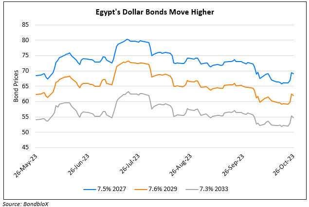 Egypt’s dollar bonds rallied by over 2 points across the curve after reports by Al-Borsa that the nation’s central bank was close to securing up to $5bn in new deposits from Saudi Arabia and the UAE. Once successful, the deposits would be later converted into investments, as per sources, who added that a preliminary agreement was reached to rollover existing deposits from both countries. These deposits are said to be maturing in 2024. Receiving this funding would be a big boost to Egypt which is trying to increase its forex reserves amid a falling currency and a delayed $3bn IMF loan program. The sources also said that debt swap agreements are to be expected in the near-term, akin to that reached with China recently for developmental projects. Egypt owes about $8bn in debt to China.