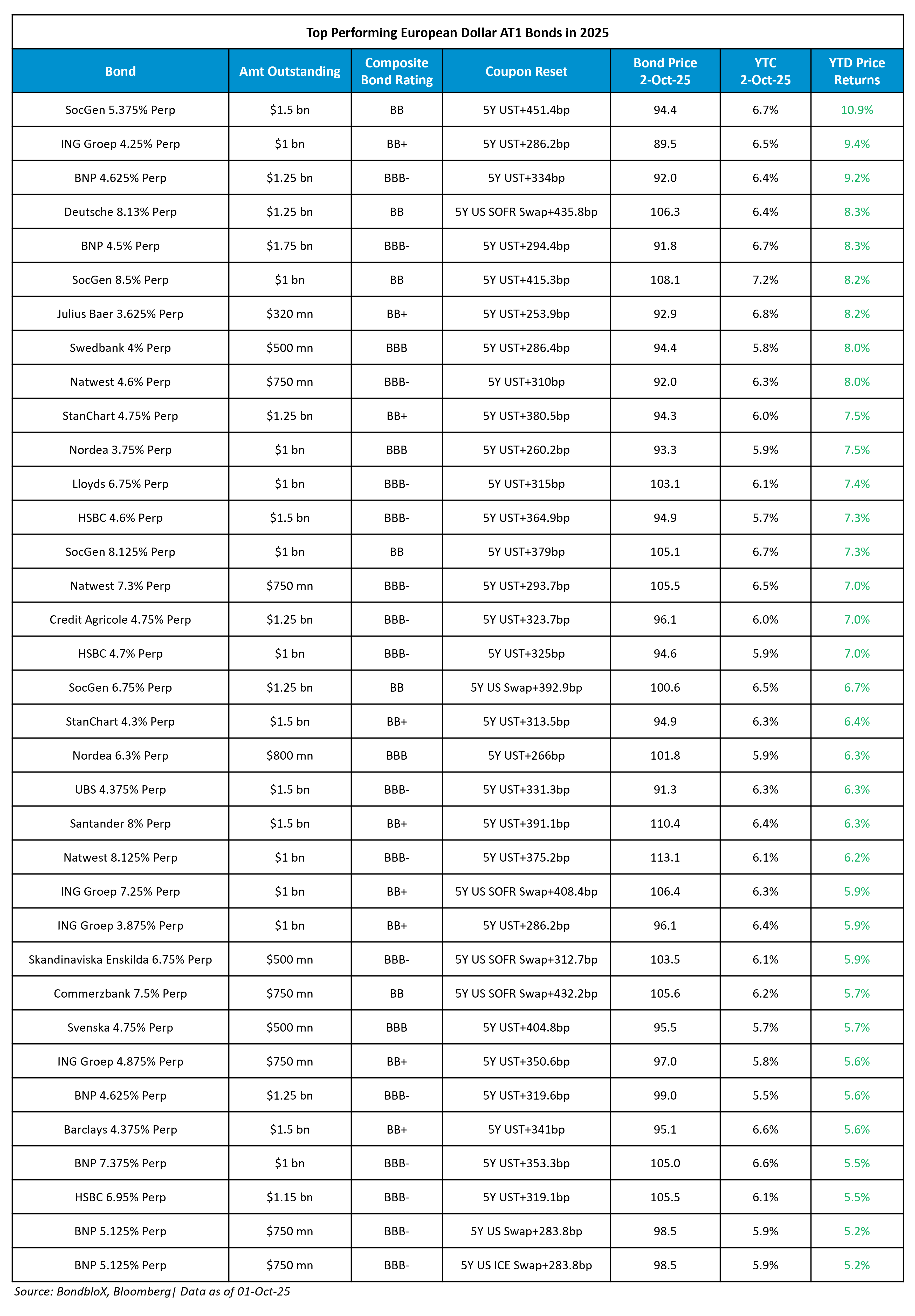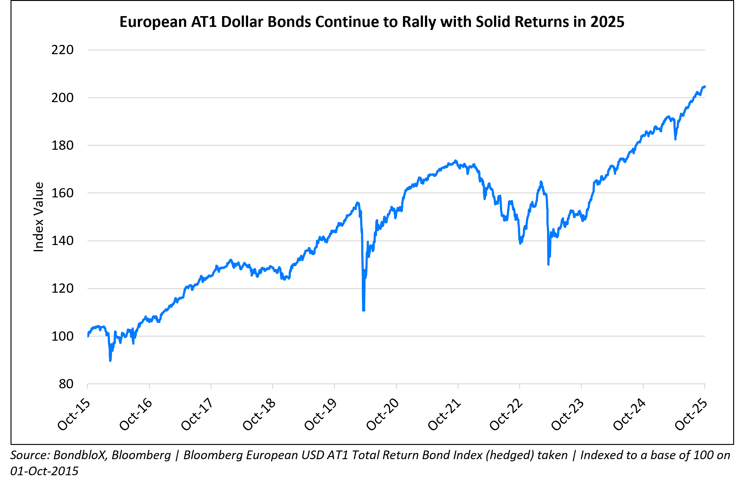 Dollar AT1 bonds of European banks have continued their record rally this year, a move that began after the drop in these bonds following Credit Suisse’s collapse in 2023. The Bloomberg European USD AT1 Total Return Bond Index shows a rally of over 57% since then. In 2025 alone, the index has seen a total return of 9.4%. Bloomberg notes that AT1 buyers have benefitted from a rosy outlook for the region’s banks, where profits have jumped this year thanks to stronger fee, trading income and robust capital buffers. Besides, it also noted that upgrades this year have outweighed downgrades by the biggest margin in about a decade, across both, S&P and Fitch.