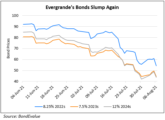 Kaisa Group’s bonds are down up to 3.5 points this morning. Its