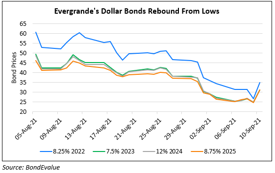 China Evergrande’s dollar bonds jumped ~30%, its largest rise since October 2020, after the company came out with a statement saying that they promise to redeem all wealth management products (WMPs) as soon as possible. Bloomberg also reports that some investors bet the government will prevent the developer’s liquidity crisis from ending in a worst-case scenario. At the Evergrande Wealth Conference on September 10, the Chairman, Hui Ka Yan said that at while the developer has encountered unprecedented difficulties, the fundamentals of Evergrande have not changed. He said that the strong combat effectiveness of the staff, the land bank with sufficient scale and reasonable layout, and the ability to build high-quality communities have not changed. He added, “I can have nothing, but the investors of Evergrande Wealth can’t have nothing!”