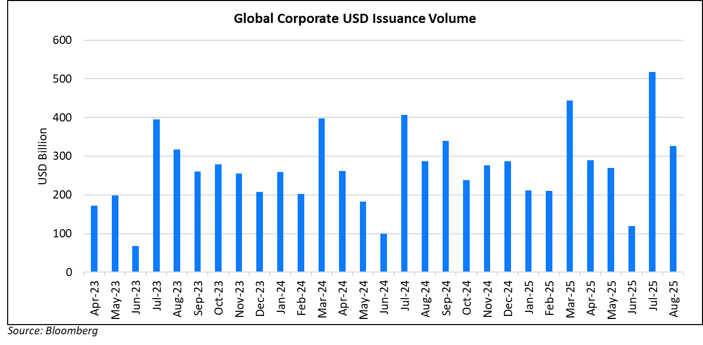 Global corporate dollar bond issuances stood at $326.2bn in February, 37% lower MoM. As compared to February 2025, issuance volumes were up 14%. 82% of the issuance volumes came from IG issuers with HY comprising 15% and unrated issuers taking the remaining 3%.