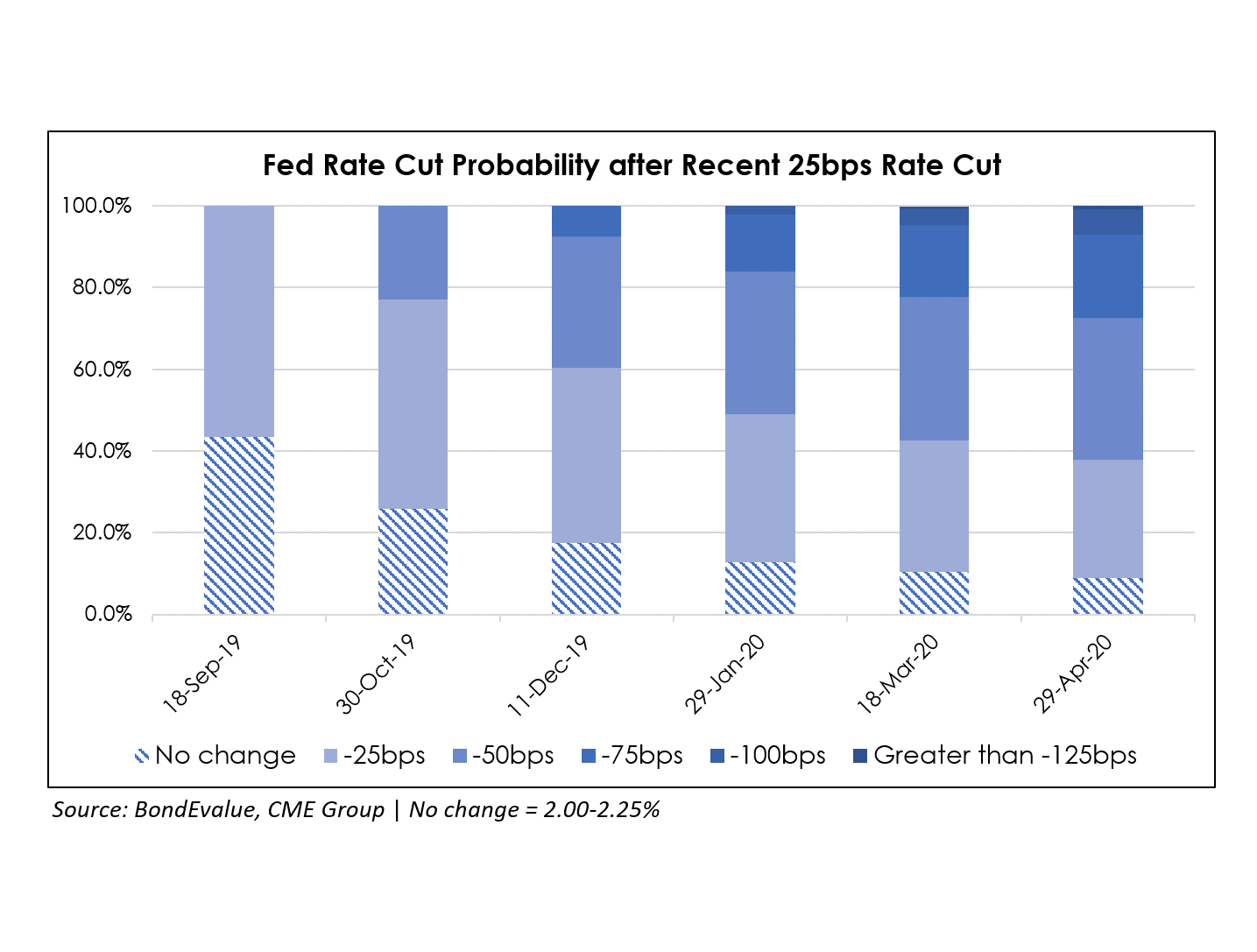 The FOMC voted to hold interest rates steady earlier in May and expressed in its statement that the U.S. would be patient in adjusting rates either up or down. The financial markets are pricing in a higher likelihood of a rate cut amid signs of slowing global growth and the brewing U.S.-China trade war. Meanwhile, President Trump is pressurising authorities to effect a 1% interest rate reduction.