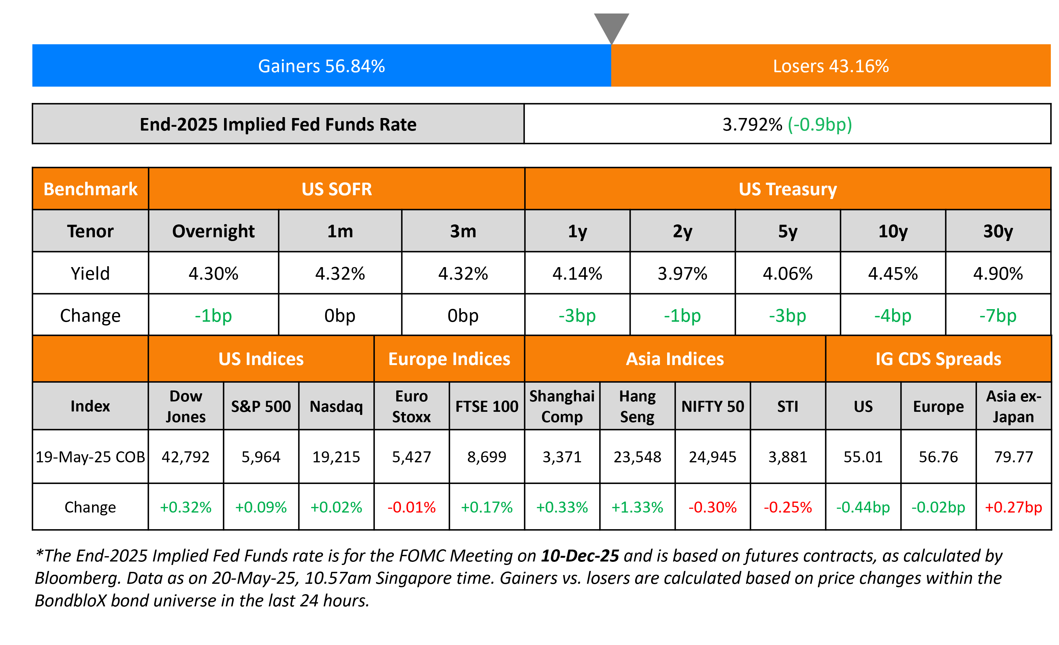 US Treasury yields eased slightly with the 10Y yield lower by 4bp. Several Fed speakers opined on the path of the central bank’s policy with their views – New York Fed President John Williams said that it will “take some time to get a clear view” on the economy’s performance amid the trade policy uncertainty. He added that the Fed can take its time to slowly figure out interest rate changes. Atlanta Fed President Raphael Bostic reiterated that he expects one rate cut this year. Fed Vice-Chair Phillip Jefferson said that the Fed’s stance was in a “very good place” and had a “moderately restrictive” impact.