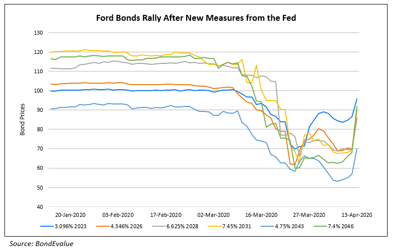 Last Thursday, the Federal Reserve entered new territory by expanding its scope of support measures to include plans to buy debt issued by high yield companies indirectly via exchange traded funds. This sparked the biggest rally in this asset class since 2008. The biggest high yield bond ETF run by BlackRock jumped more than 7% on the news. The program also allows purchase of some “Fallen Angels” like Ford since the central bank will buy corporate bonds that were rated triple B minus or above as of March 22. The Fed also announced that it would purchase up to $500bn of short term notes from states and some counties and cities, but stopped short of supporting longer dated municipal bonds.