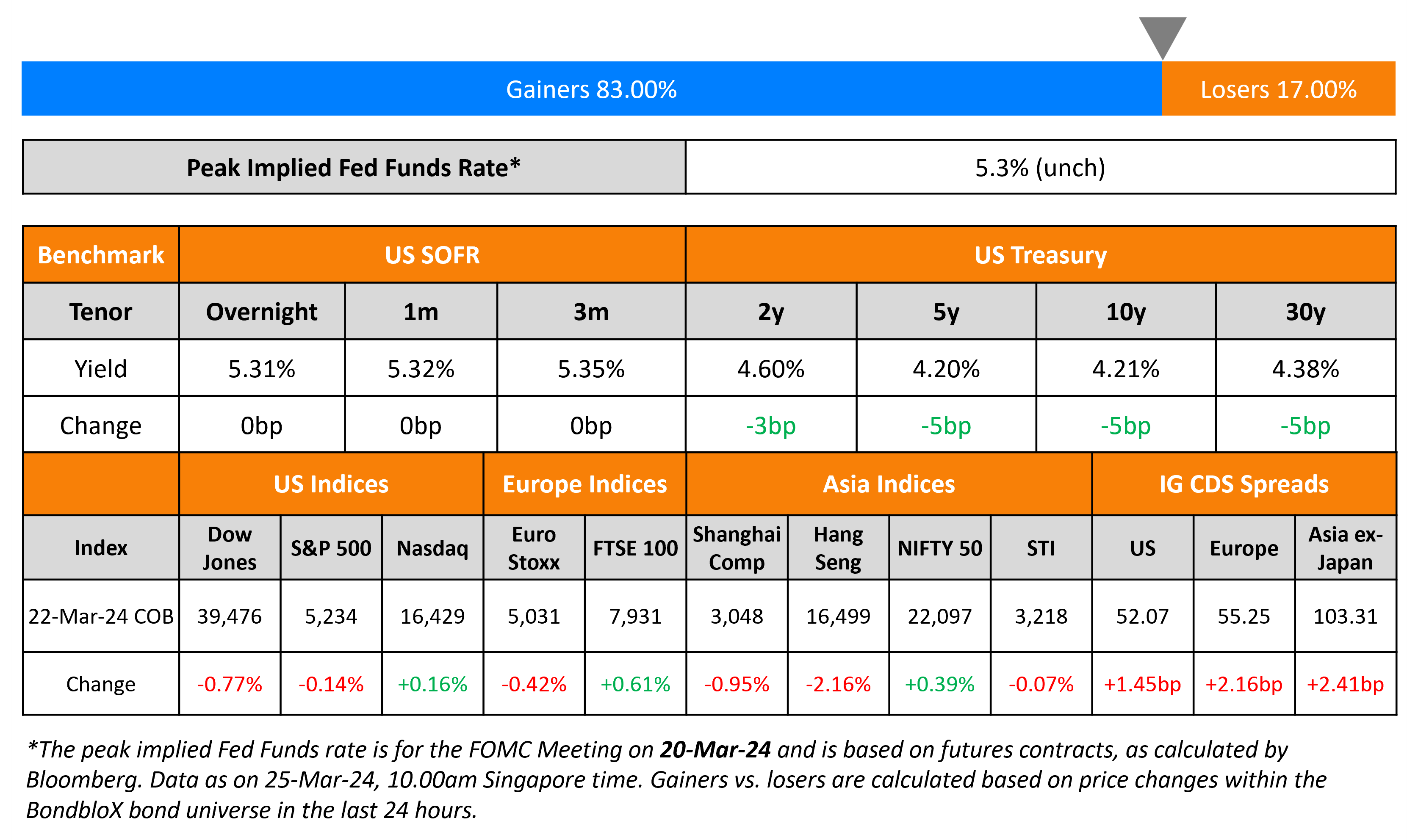 FWD Group raised $900mn via a 5Y bond at a yield of 8.4%. The junior subordinated notes are rated Ba1/BBB- (Moody’s/Fitch). In September 2023, the Hong Kong based insurer had shelved a planned dollar bond offering where it hoped to raise about $325mn via a 10Y bond. The new bonds were priced at par and have jumped over 3.7% in the secondary market since they were issued.