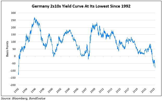 European equity indices closed higher, with European main and Crossover CDS tighter wider by 1.2bp and 6.6bp. The German 2s10s yield curve inverted to its lowest levels since September 1992, with the spread at -88.3bp. Asia ex-Japan CDS spreads widened by 3.8bp. Asian equity markets have opened mixed this morning to begin the week.