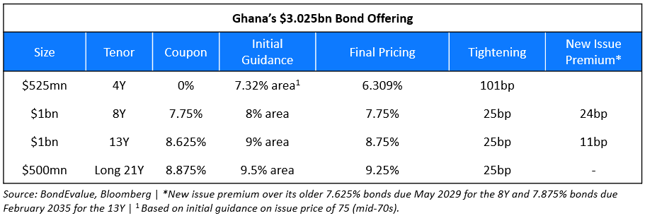 Ghana’s USD bonds were stable. Its 10.75% 2030s were trading at 127.342, yielding 6.76%