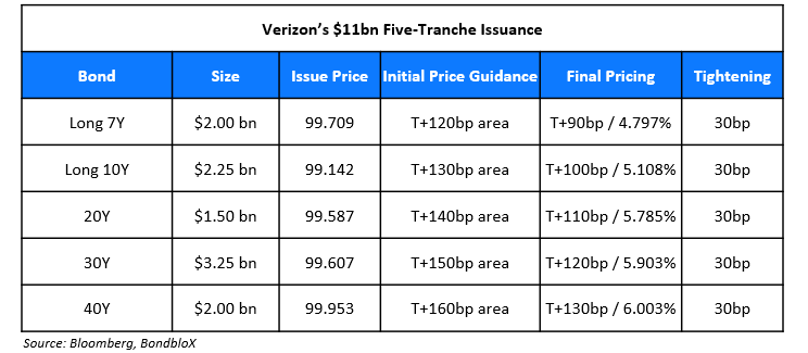 The senior unsecured notes are rated Baa1/BBB+/A-. Proceeds will be used to fund the acquisition of Frontier Communications Parent Inc., including related costs and expenses, and to refinance debts of Frontier. Any remainder will be used for general corporate purposes.