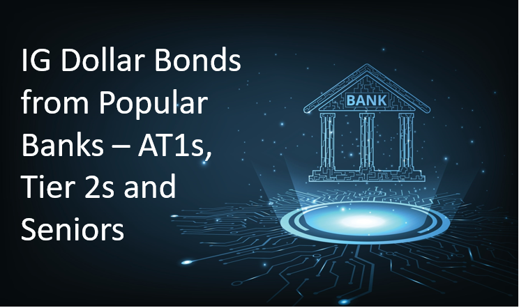 We have thus put together a series of interactive charts that plot IG-rated dollar bonds from popular banks – AT1s, Tier 2s and senior notes. For each chart, we have plotted the bonds’ yield vs. its maturity / next call date. In the charts below, you can hover over each bond for more details like the price, yield, duration, rating, coupon reset and more.
