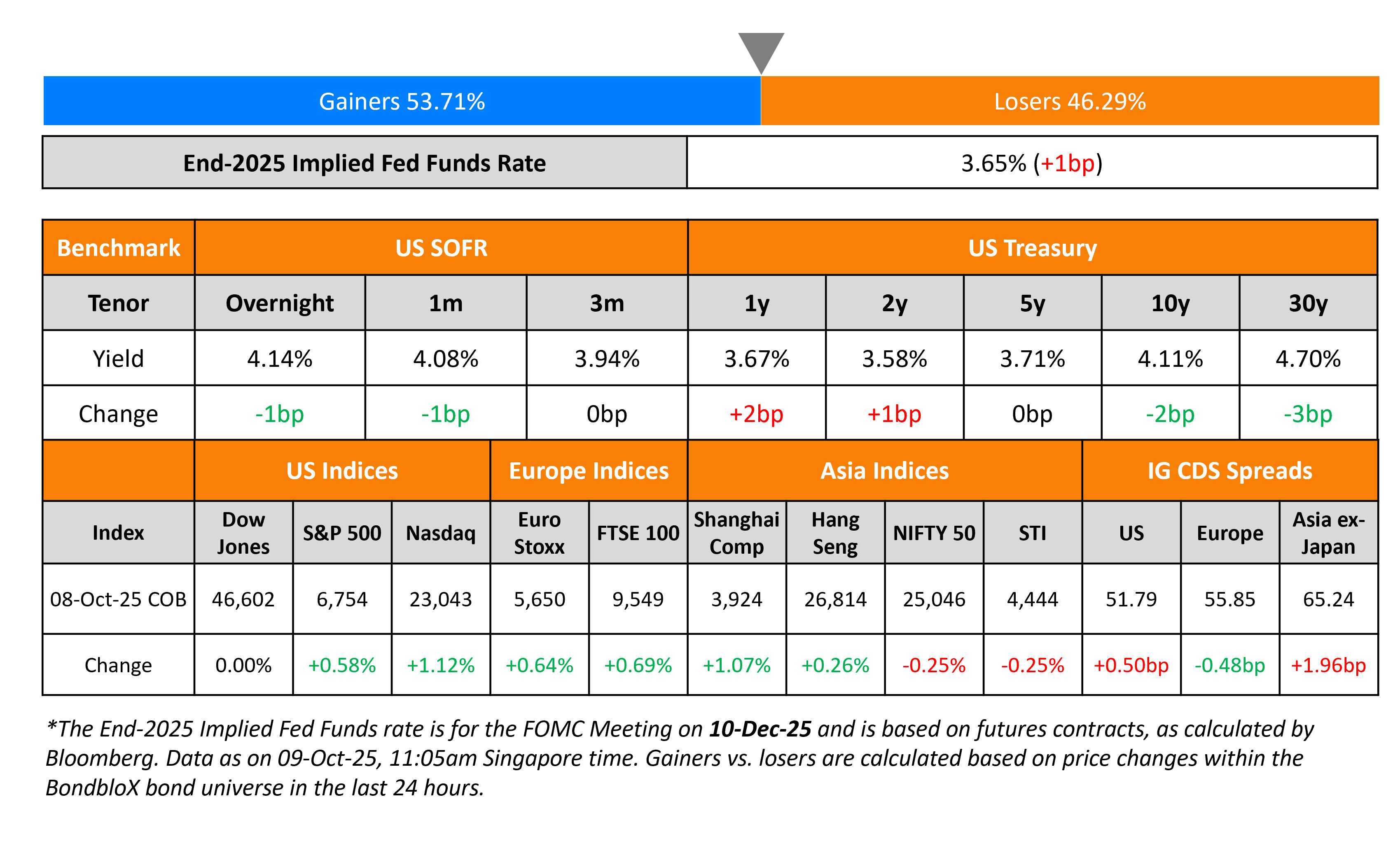 Looking at equity markets, both the S&P and Nasdaq ended higher by 0.6% and 1.1%. The US IG and HY CDS spreads widened by 0.5bp and 2.5bp respectively. European equity indices also closed higher. The iTraxx Main CDS spreads were 0.5bp tighter while the Crossover spreads were flat. Asian equity markets have opened higher today. Asia ex-Japan CDS spreads were 2bp wider.