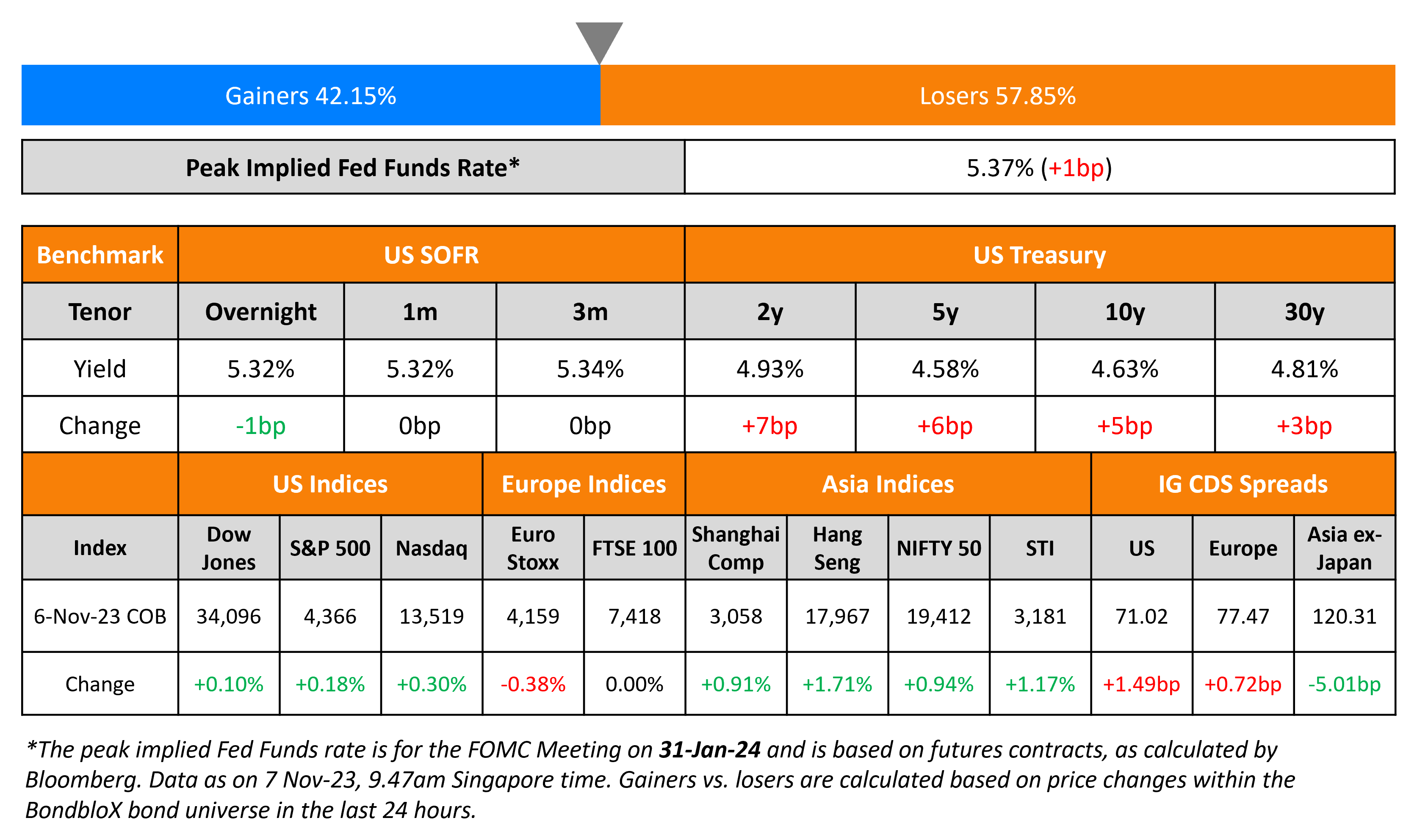 US Treasury yields were 3-5bp lower on Thursday. Initial jobless claims for the previous week rose to its highest in eight months to 233k vs. expectations of 212k with analysts noting that it might indicate some signs of a cooling down in the labor market. San Francisco Fed President Mary Daly said that it might “take more time” for the current rates to bring inflation down. She added that there was “considerable uncertainty” about what the next few inflation readings would be and what the Fed “should do in response”. Regarding the labor market, she said that it was “far too early” to say that it was “fragile or faltering”. S&P and Nasdaq were higher, up by 0.3-0.5%. US IG CDS spreads tightened 0.2bp and HY spreads were 2bp wider.