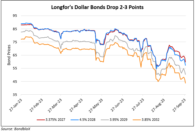 Chinese property developers Longfor and Vanke saw their dollar bonds drop across the curve. Longfor’s bonds fell as much as 3.9 points and Vanke’s bonds were down ~1.6 points. Both Longfor and Vanke are IG-rated developers and the drop in their bonds come at a time when Country Garden approaches a possible default on its dollar bonds. Also, Vanke was downgraded yesterday by Fitch to BBB from BBB+ on the expectation that its leverage (measured by net debt-to-net property assets) will stay above 35%. Besides, the sector has seen a continued drop in property sales. Data yesterday showed that property sales by floor area fell 19.8% YoY in September and YTD sales fell 7.5% YoY.