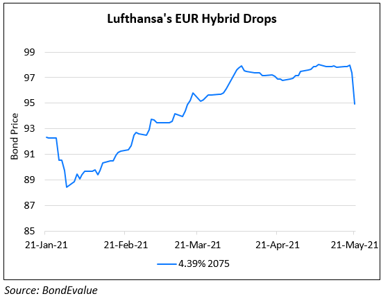 Lufthansa Group’s executive board decided to suspend future coupon payments on its hybrid €500mn 4.39% 2075s that were issued in 2015. The company said that the suspension of coupons “does not result in the forfeiture of the entitlement to the coupon payments” and that they intend to “make up for the deferred coupon payments as soon as possible once the stabilization by the ESF has been completed.” Lufthansa had been given a state aid package and paying coupons would be considered a violation based on the EU Commission’s terms of the package. Lufthansa added that they have “not issued any other corporate bonds or financial instruments with options to suspend interest or coupon payments.” Bankers do note that despite this event, it would be unlikely to have any impact on Lufthansa’s future access to capital markets and that this is an isolated case. Bloomberg points out that while coupon deferrals are rare in hybrids, once they happen, they can cause substantial havoc. They added that from a ratings agency perspective, hybrid borrowings count towards equity provisions with discretionary coupons. BNP analysts said that there is unlikely to be impact for other state-owned issuers as none of them have taken emergency state aid. As per the bond’s prospectus, the issuer may, at its discretion, defer interest payments at any time but is not obliged to if specific events like dividend or other distributions are made to shareholders. Additionally, the delayed interest payments will not itself accrue interest and failure to pay/defer will not constitute default.