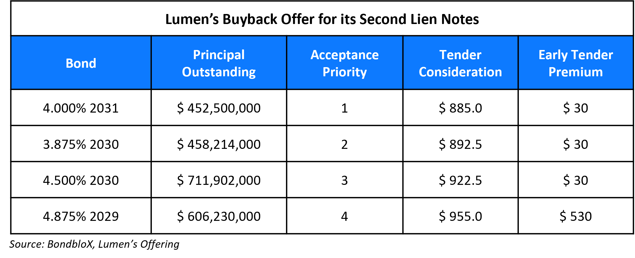 Level 3 Financing is also conducting a cash tender offer to buy back back up to $1.5bn across four of its second lien notes (excluding accrued and unpaid interest) as shown in the table below. The early tender date is December 19 and the offer will expire on December 23.