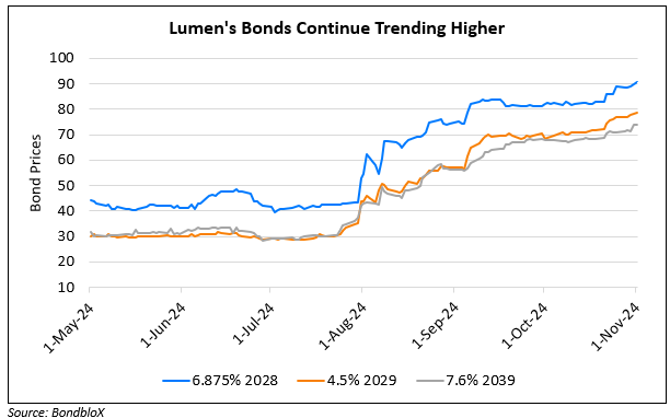 Lumen’s bonds rallied by over 1.5-2 points across the curve. The company announced an agreement with Amazon Web Services (AWS) to boost connectivity and network optimization for AI-driven cloud applications across the US. Lumen will provide fiber connectivity to AWS data centers, while Lumen will use AWS technologies, including AI, ML and security solutions, to modernize its network and product infrastructure.