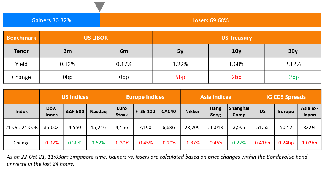 Zhaoqing Guolian Investment Holding raised $300mn via a 3Y green bond at a yield of 2.68%, 32bp inside initial guidance of 3% area. The bonds have expected ratings of Baa3/BBB– (Moody’s/Fitch). Proceeds will be used in accordance with the issuer’s sustainable financing framework. The state-owned issuer is an ‘assets operating entity’ carrying out engineering and infrastructure construction, commercial sales, water supply and sewage treatment, transportation, power generation and real estate development in Zhaoqing city, Guangdong province in China.