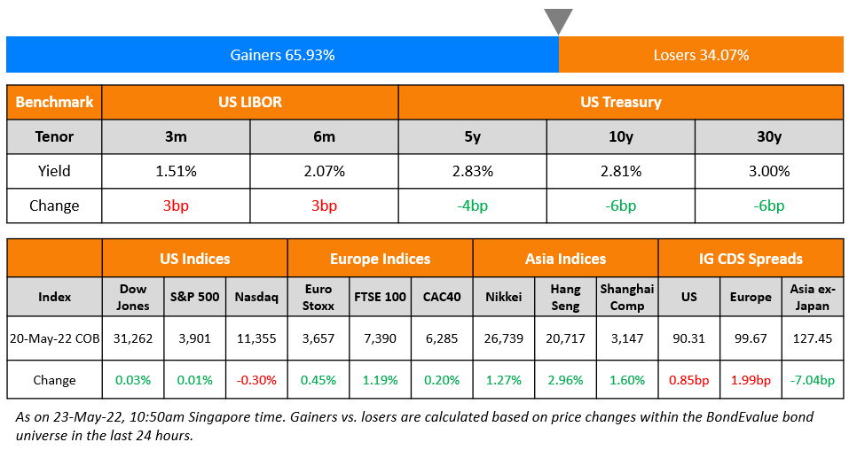 US equity markets saw a minor change on Friday with the S&P near flat while Nasdaq was down 0.3% Sectoral gains were led by Healthcare and Real Estate, up over 1% each while losses were led by Consumer Discretionary and Industrials, down over 1% each. US 10Y Treasury yields eased another 6bp to 2.81%, a total of 17bp in the last three days. European markets ended higher on Friday with the DAX, CAC and FTSE up 0.7%, 0.2% and 1.2% respectively. Brazil’s Bovespa closed 1.4% higher. In the Middle East, UAE’s ADX was up 0.9% on Friday and Saudi TASI fell 0.8% on Sunday. Asian markets are off to a negative start – Shanghai, HSI and STI were down 0.5%, 1.8%, 0.4% while Nikkei was up 0.5% respectively. US IG CDS spreads widened 0.8bp and HY spreads widened 6.7bp. EU Main CDS spreads were 2bp wider and Crossover spreads were 10.2bp wider. Asia ex-Japan CDS spreads were 7bp tighter.