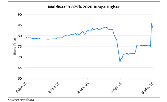 Maldives’ 9.875% 2026s rallied ~10 points following the update, but have corrected slightly today to trade at 83.8 cents on the dollar.