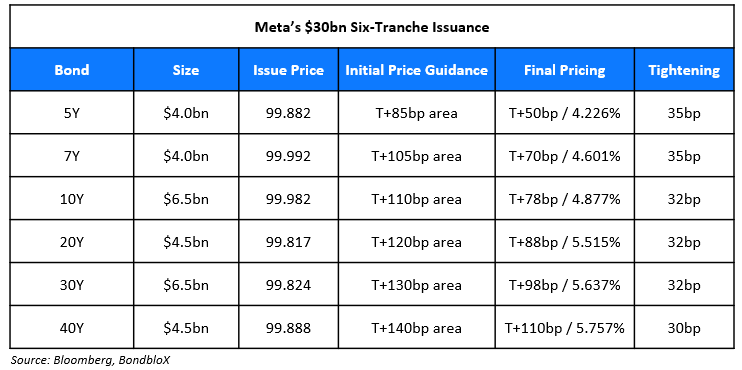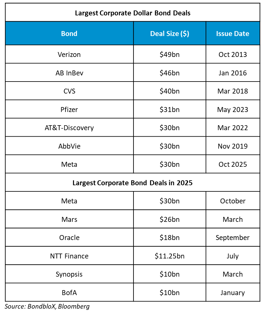 The senior unsecured notes are rated Aa3/AA-. Proceeds will be used for general corporate purposes that includes funding its massive artificial intelligence (AI) plans. This is the largest corporate bond deal this year and among the top 5 largest bond deals ever.