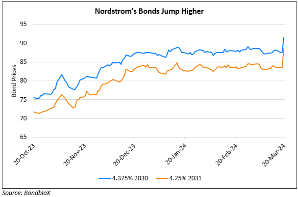 Nordstrom and its unsecured debt ratings were downgraded by a notch to BB from BB+ by Fitch. The downgrade reflects Fitch’s reduced confidence in the company’s ability to defend its market share and stabilize EBITDA amid headwinds faced by the department store segment. Despite several strategic initiatives launched by the company, in 2023, its revenue and EBITDA were 5% and 23% below 2019 levels, highlighting operating challenges faced by it since the pandemic. According to Fitch, the company has not been able to leverage its advantages like having a leading omnichannel model or exposure to the growing off-price segment to drive profitability growth.