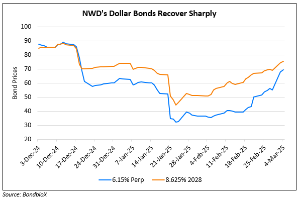 NWD’s dollar bonds shot higher across the curve. In particular its 6.15% Perp callable from March 26 to June 16 surged by 14 points. This follows its announcement to boost cashflows and reduce debt. Echo Huang, the CEO of NWD announced plans to offload non-core assets, cut costs and improve rental returns. Also, the developer had reiterated that it was not discussing a holistic debt restructuring plan. While analysts noted that the latest developments should further ease liquidity concerns, they do note that a clearer deleveraging plan is needed.