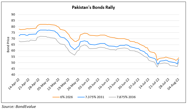 Pakistan’s bonds inched up along with a 4% jump in the Pakistani rupee (PKR) yesterday on news that the nation has halved its trade deficit in July to $2.6bn and that it is making progress in receiving a bailout from the IMF. Bloomberg notes that export-related payments rose and an imposition of import curbs reduced its imports by 13% to $4.9bn YoY, contributing to the improvement in its trade deficit. The curbs also reduced the demand for the dollar, in turn strengthening the PKR. Additionally, Esther Perez Ruiz, IMF’s country representative said that Pakistan has fulfilled all of IMF’s requirements before the loan review, renewing optimism that it will be able to avoid defaulting on its sovereign obligations amid dwindling reserves. Finance minister Miftah Ismail said, “Pakistan by having an IMF program, by introducing a significant tight budget and depressing demand for imports has weathered the storm.”