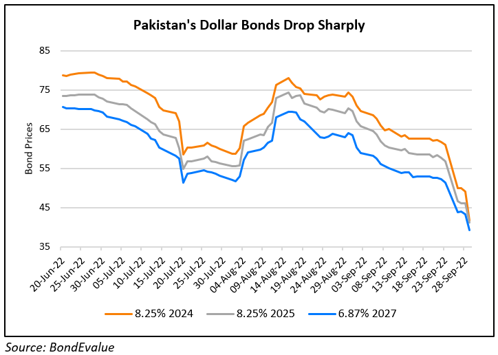 Pakistan’s sovereign dollar bonds declined ~14% as the new finance minister Ishaq Dar vowed on Wednesday to bring down interest rates and fight inflation. The minister said that the PKR currency undervalued and promised to take a strong response for economic crisis. It is Dar’s fourth stint as finance minister and he replaced his predecessor Miftah Ismail who quit earlier this week. With the nation being hit by devastating floods, its overall finances have only weakened, with forex reserves covering barely one month of imports. As of August, inflation was at a 47-year high of 27.3%. Pakistan’s dollar bonds continuously falling since its Prime Minister Shehbaz Sharif said that “all hell will break” if they do not get a “substantial relief” on their debts.