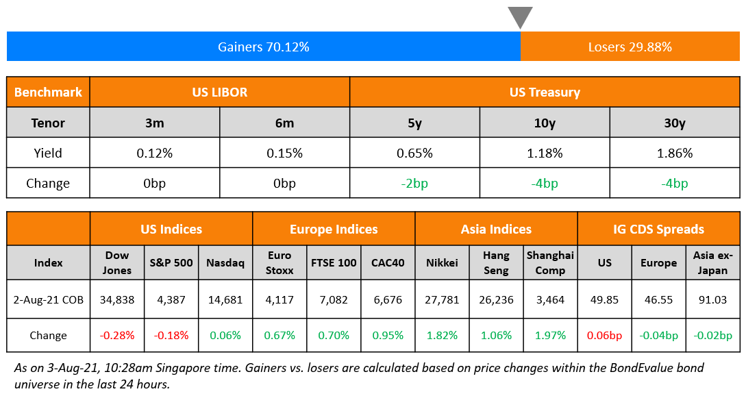 For the box & whisker chart of investment grade bonds, issuance volumes, largest deals, top gainers and losers for July, click the button below: