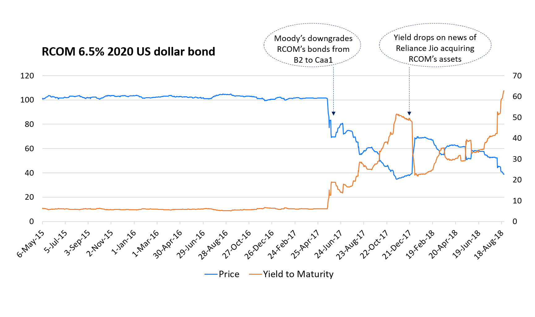 Reliance Communications Ltd’s dollar bonds due 2020 that defaulted last year slumped to a seven-month low after the Indian mobile operator controlled by billionaire Anil Ambani offered in mid-August to repay holders at a discount to the principal value. The Company has been trying to close a sale of wireless assets to Reliance Jio Infocomm Ltd. that would raise money to help pay creditors. Reliance Communications’ notes have fallen 13 cents on the dollar to 39 cents since the announcement of the offer on 6th August.