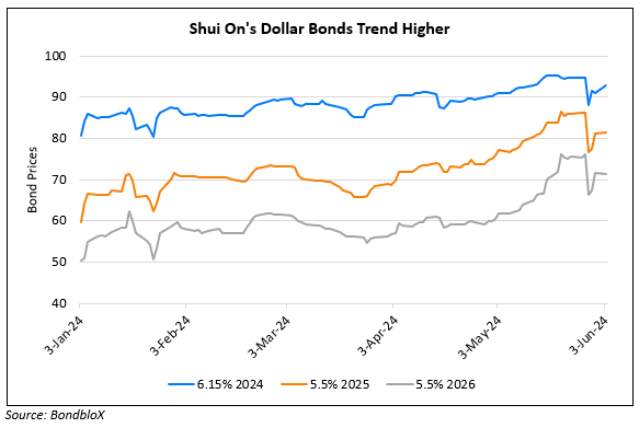 Shui On has held talks with bankers including UBS Group and JPMorgan Chase for a potential dollar bond issuance, as per sources. No official mandate has been made yet. The property company currently has three dollar bonds with an amount outstanding totaling $1.39bn. The company’s dollar bonds have been trending higher since April with bouts of volatility seen over the last week.