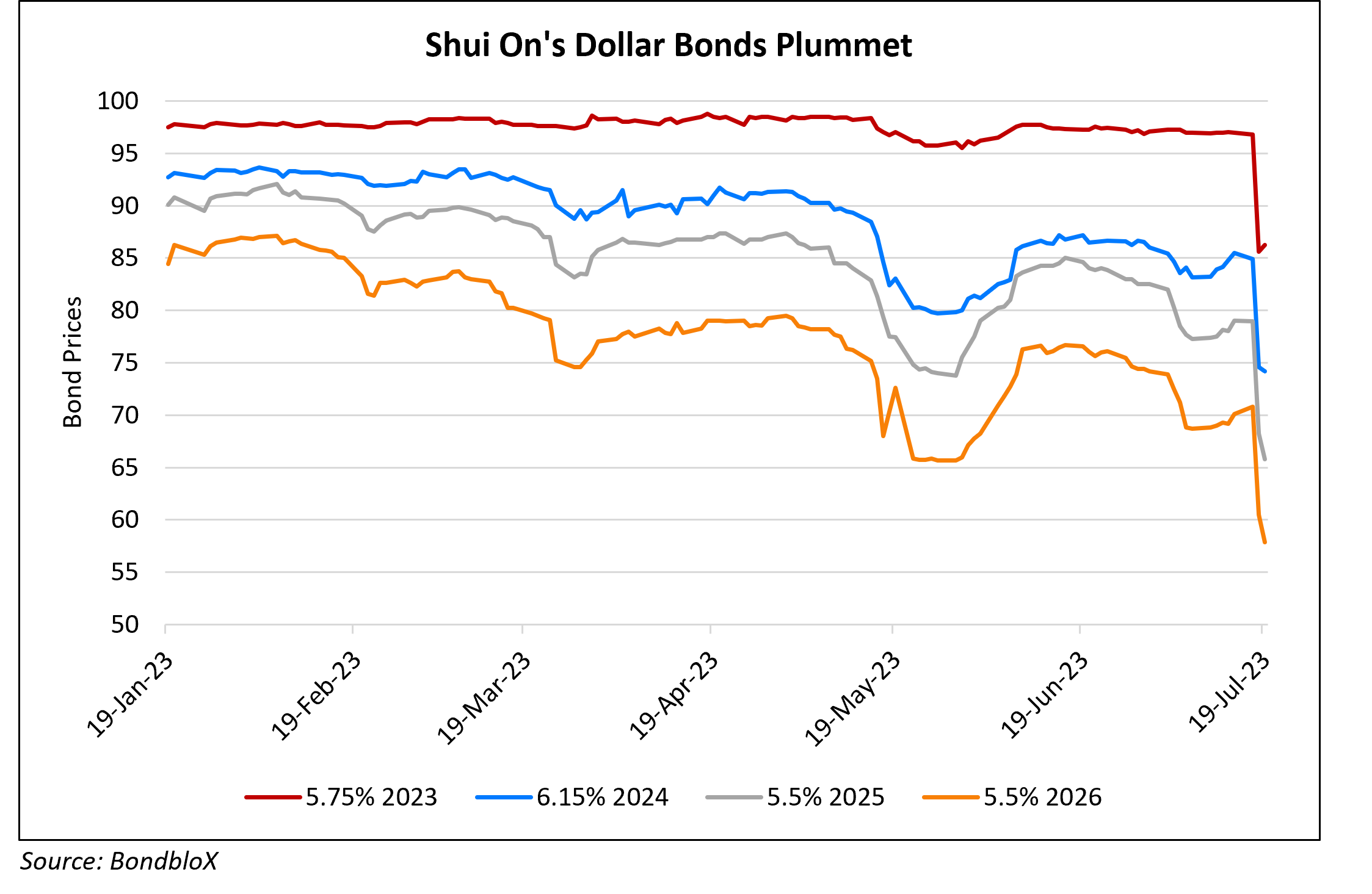 Hong Kong developer Shui On’s dollar bonds fell over 10 points across the curve after it made a move to identify bondholders holding two dollar notes, raising market fears. The bonds in question are it 5.25% bonds due November 2023 and 5.25% bonds due August 2024 for which it has engaged Morrow Sodali. As per Bloomberg, this move by Shui On is said to have worried investors, noting that the decision could be a prelude to payment extensions. However, there was no details revealed by Shui On. An investor relations representative of Shui On said that its notice was “part of our IR engagement exercise”.