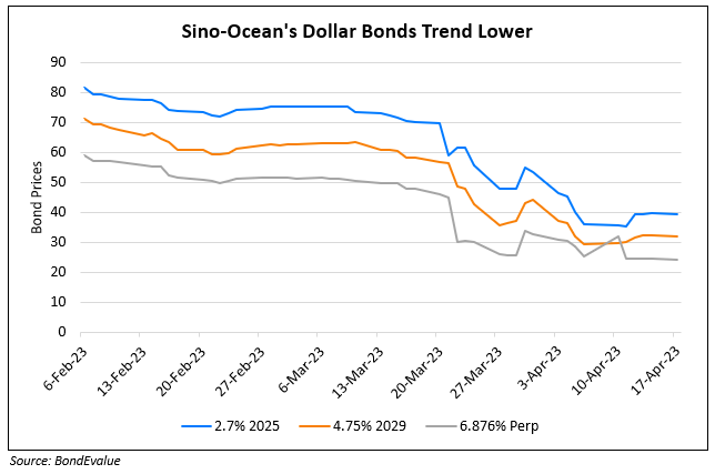 Sino-Ocean’s financial stresses have pushed its bonds more than 15 points lower over the past month.