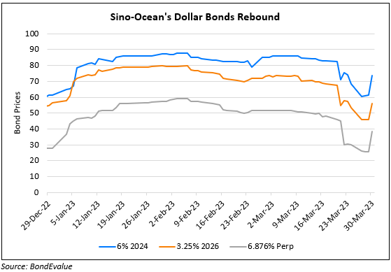 Dollar bonds of Sino-Ocean rallied across the curve after the developer told Bloomberg that it repaid its USD 6.876% Perp’s coupon payment that it had chosen to defer on March 21. It said that the company values creditors’ opinions and the coupon amount was small, thereby leading them to complete the coupon payment. A week ago, Sino-Ocean had issued a profit warning expecting ~RMB 15-18bn ($2.2-2.6bn) in losses for 2022 vs. a profit of RMB 27.3bn ($4bn) in 2021.