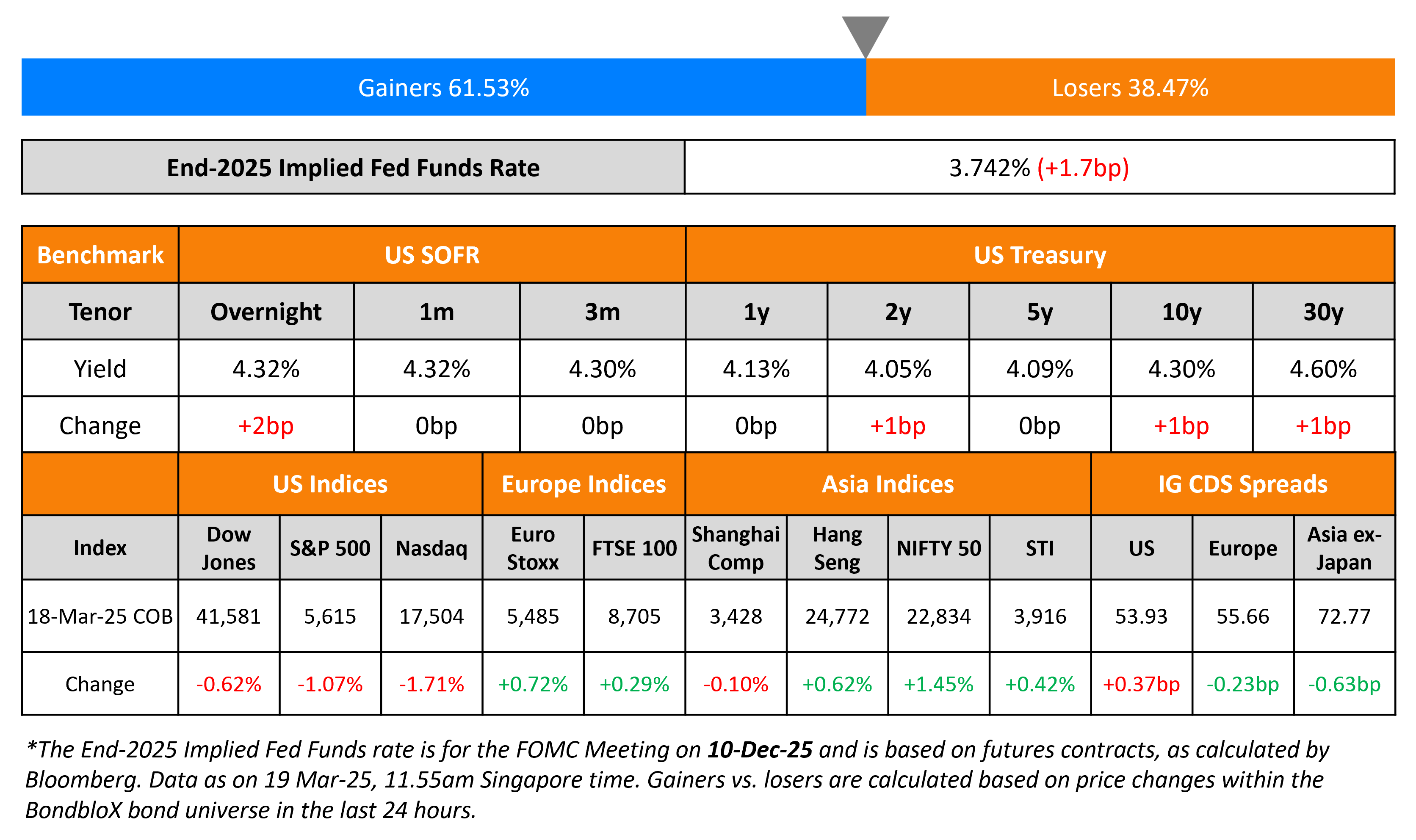 Emirates Islamic Bank raised $750mn via a 5Y sukuk at a yield of 5.059%, 30bp inside initial guidance of T+125bp area. The senior unsecured note is rated A+ (Fitch). Proceeds will be used for general corporate purposes.