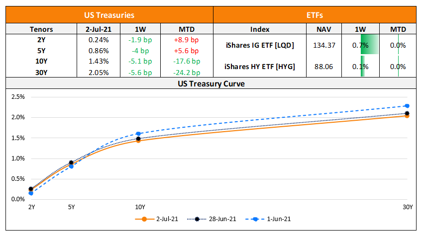 US primary market issuances dropped to $13.2bn vs. $23.1bn in the week prior. IG issuances fell last week to $9.6bn vs. $15.1bn in the prior week and HY issuances were lower at $3.1bn vs. $6.4bn in the prior week. The largest deals in the IG space were led by Salesforce’s $8bn six-trancher followed by American Homes 4 Rent’s $750mn two-trancher. In the HY space, Elastic NV’s $975mn two-trancher and APX Group’s $800mn deal led the table. In North America, there were a total of 28 upgrades and 16 downgrades combined across the three major rating agencies last week. LatAm saw $3.5bn vs. $4.51bn in new bond issuances in the prior week. Issuances were led by the Brazil government’s $2.25bn dual-trancher and Suzano’s $1bn issuance. EU Corporate G3 issuances were also lower at $17.3bn vs. $21.6bn in the week prior – Vallourec, SocGen, Credit Agricole and UniCredit raised €1bn ($1.18bn). Across the European region, there were 28 upgrades and 19 downgrades across the three major rating agencies. Overall, GCC and Sukuk G3 issuances rose sharply to $13.6bn vs. $1bn in the week prior singlehandedly led by Qatar Petroleum’s $12.5bn four-part offering, the largest deal in APAC and Middle East since the Saudi Government issued a $12.5bn three-trancher in September 2017. Across the Middle East/Africa region, there was 1 upgrade and 6 downgrades across the three major rating agencies. APAC ex-Japan G3 issuances were slightly higher at $10.25bn vs. $9.1bn in the prior week – The Philippines government’s $3bn two-trancher led the table followed by NAB’s €850mn ($1.01bn) deal, BOCOM Hong Kong and Mongolia’s $1bn issuances each. In the Asia ex-Japan region, there were 9 upgrades and 7 downgrades combined across the three major rating agencies last week. Within Asia (including Japan), SoftBank raised over $7bn via a USD & EUR issuance, Asia’s second largest bond deal YTD which was issued on the back of good market conditions and to expand their investor base.