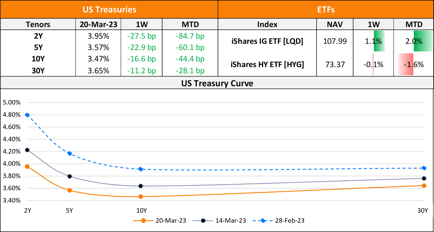 US primary market were quiet with no new deals last week vs. $28.2bn a week prior. In North America, there were a total of 28 upgrades and 51 downgrades across the three major rating agencies last week. In South America, there were 16 upgrades and 23 downgrades across the major rating agencies. EU Corporate G3 issuance stood at a mere $4.9bn vs. $33bn a week prior. Issuance volumes were led by DZ Bank’s €1.5bn dual-trancher and KfW’s €1bn tap of its existing 2.5% notes that mature in 2025. Across the European region, there were 26 upgrades and 32 downgrades. The GCC dollar primary bond market saw $119mn in new deals, comprising mainly of QNB Finance’s $100mn private placement. Across the Middle East/Africa region, there were 6 upgrades and 1 downgrade across the major rating agencies. No LatAm deals were seen last week. The APAC ex-Japan G3 region saw $978mn in issuances vs. $7bn raised in the week before that, led by Brambles Finance’s €500mn 8Y Green bond. In the APAC region, there were 1 upgrade and 4 downgrades combined across the three rating agencies last week. No deals were seen in the SGD market.
