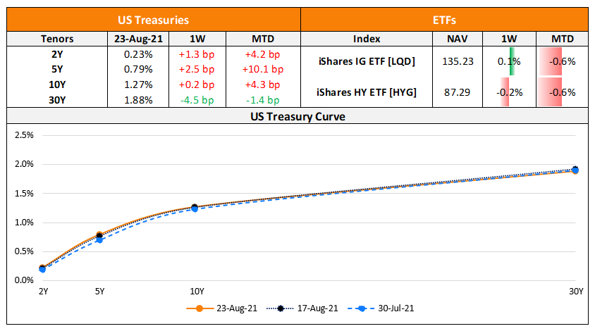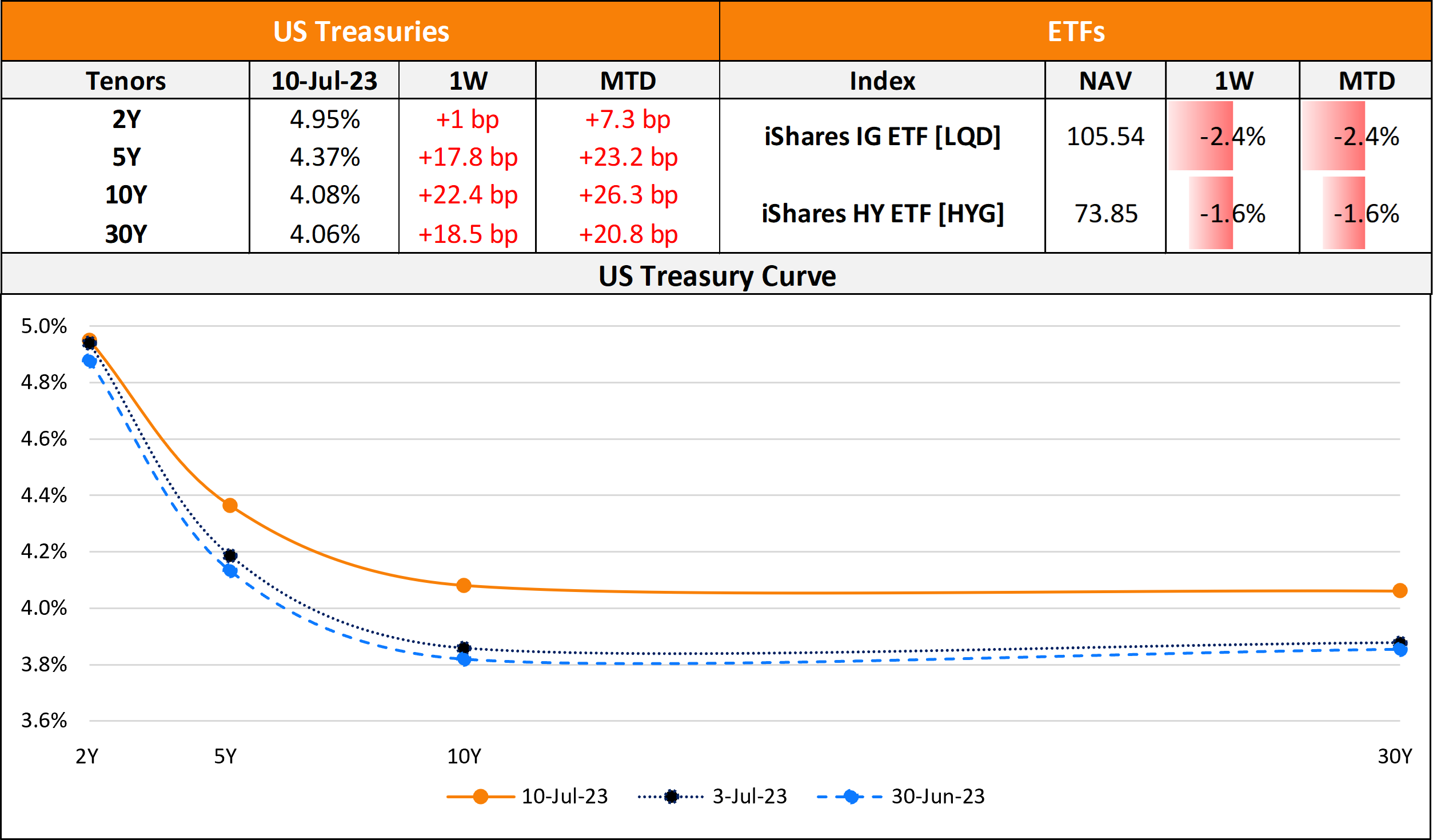 EU Corporate G3 issuances recorded $28.7bn in new deals, slightly lower than the $30.2bn seen in the week prior to it. The largest deals were led by KfW’s $4bn two-part deal and Astrazeneca’s $3.5bn three-part deals leading the tables. The region saw 18 upgrades and 35 downgrades across the three major rating agencies. The GCC dollar primary bond market saw $2bn in new deals with FAB and Saudi National Bank raising $850mn each, after seeing $100mn in deals a week prior to it. Across the Middle East/Africa region, there were 3 upgrades and downgrades each across the major rating agencies. LatAm saw $3.7bn in new deals after no new deals a week ago. This was solely led by Panama’s $3.1bn three-trancher. The South American region saw 1 upgrade and downgrade across the rating agencies.