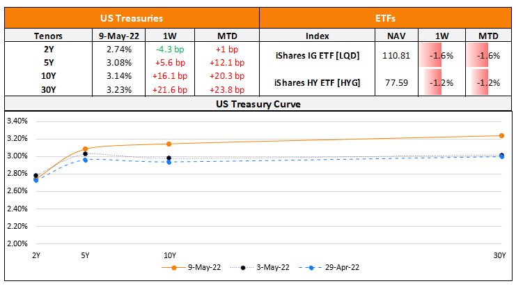 The US yield curve bear steepened last week – the 2s10s curve bear steepened 20bp to levels of 40bp as long-end yields continued to move higher. US primary market issuances rose 2x last week to $22.1bn vs. $11.5bn in the week prior with Investment grade (IG) corporates issuing $21.7bn of deals while high yield (HY) issuances were at a mere $350mn. The largest IG deals included Capital Group raising $4bn via a four-trancher and PG&E Wildlife raising $3.6bn via a five-trancher. In the HY space, College Holdings LLC was the sole issuer. In North America, there were a total of 25 upgrades and 15 downgrades combined across the three major rating agencies last week. LatAm saw $10.5bn in issuances last week vs. $500mn in the prior week, with Banco Santander Brasil raising $10bn. In South America, there were no upgrades and 5 downgrades across the major rating agencies. EU Corporate G3 issuances stood at $27.3bn vs. $23.5bn in the week prior, led by TenneT Holdings raising €3bn and UBS raising $3bn via a three-trancher. Across the European region, there were 12 upgrades and 18 downgrades across the three major rating agencies. The GCC G3 region saw no new deals last week for a second consecutive week. Across the Middle East/Africa region, there were no upgrades and 3 downgrades across the three major rating agencies. The APAC ex-Japan G3 region saw no issuances last week vs. $5.7bn in the week before in a short trading week also marred by volatility. In the APAC region, there were 12 upgrades and 2 downgrades combined across the three major rating agencies last week.