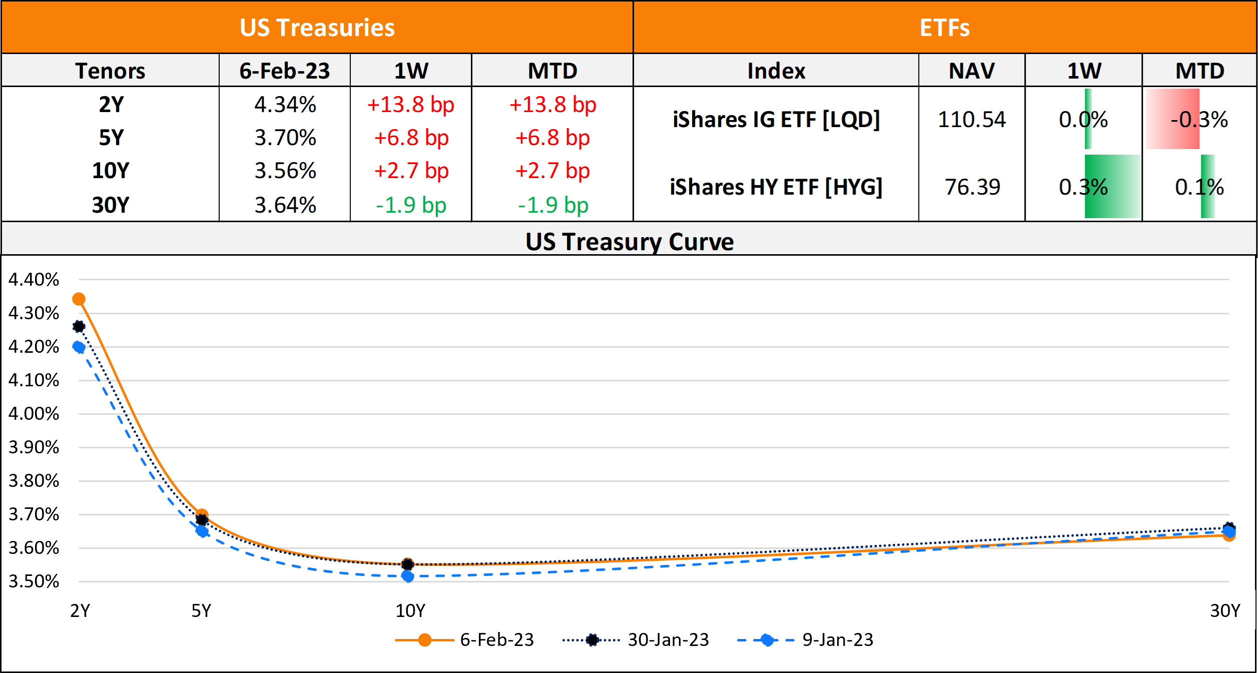 US primary market issuances stood at $24.5bn last week vs. $27.7bn a week prior. IG issuances stood at $16.3bn led by Oracle’s and IBM’s $5.25bn and $3.25bn four-tranchers each. HY issuances stood at $8.1bn led by Uniti Group’s $2.6bn and CCO Holdings’ $1.1bn issuances. In North America, there were a total of 36 upgrades and 52 downgrades across the three major rating agencies last week. As per Lipper data, US IG bond funds saw outflows of $582mn for the week ended February 1, following last week’s haul of $3.28bn, snapping a three-week streak of inflows totaling almost $13bn.. HY bond funds saw $1.5bn of outflows in the week ending February 1, following last week’s $1.28bn in outflows. Looking at credit, CDS spreads across all regions are at its tightest levels in over a month, as seen in the box & whisker chart below.